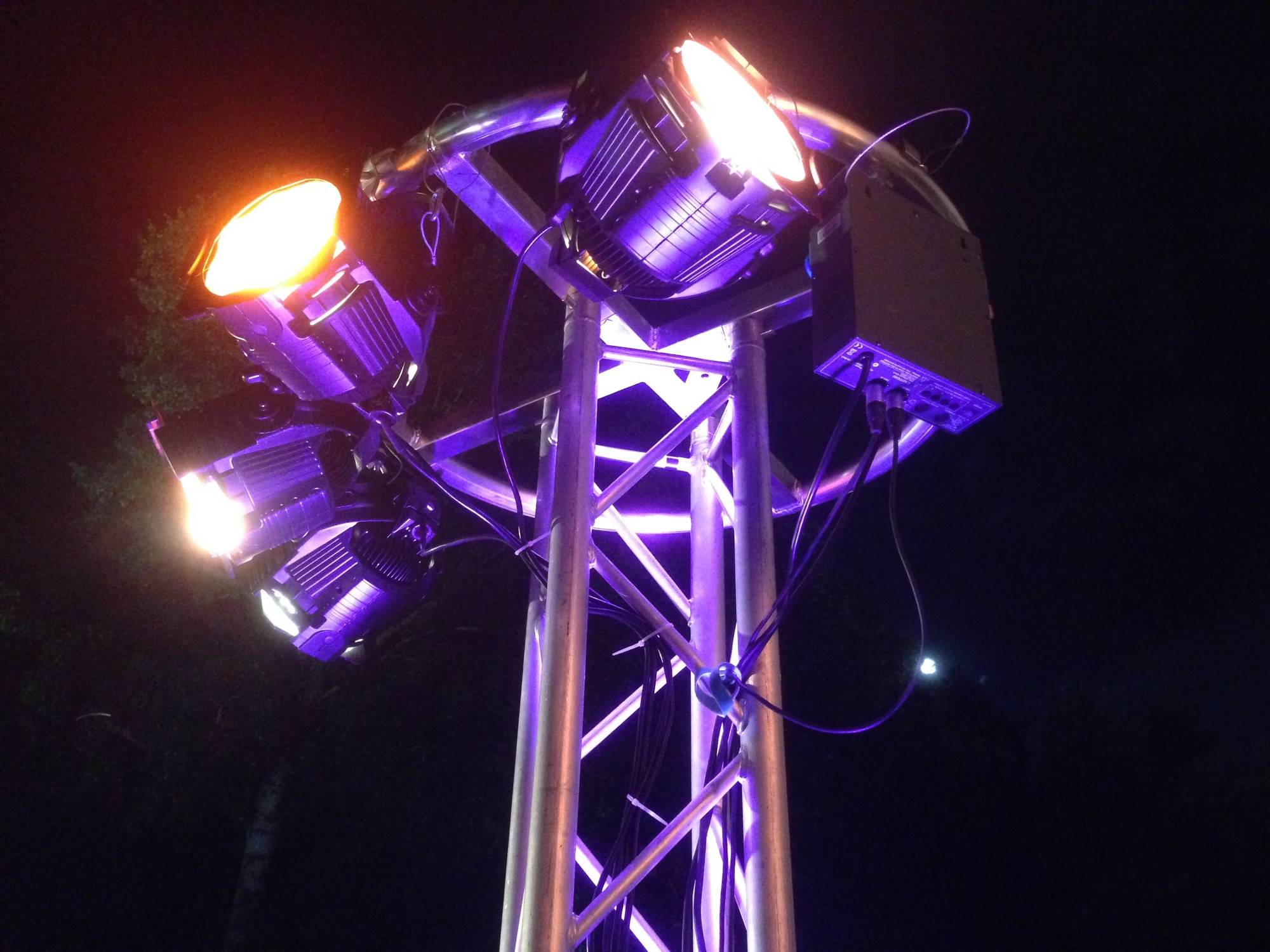 L'ensemble de l'éclairage était controlé depuis une régie centrale via une console DMX. Nous avons également utilisé la technologie DMX sans fil pour certains points un peu trop éloignés de la régie.